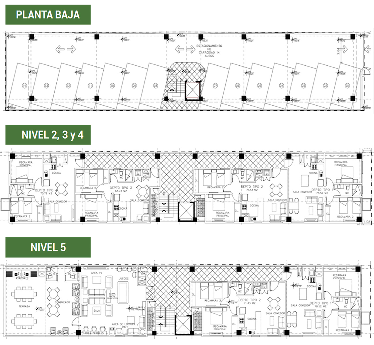 Además de los departamentos, nuestras instalaciones contarán con otro tipo de áreas