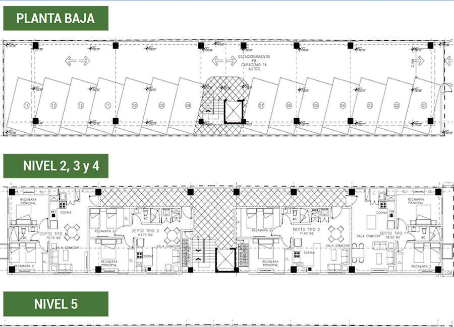 En este plano podrán apreciar la estructura de las diferentes plantas que comprenden el edificio